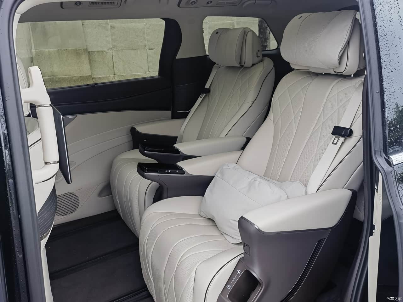 车内空间是 MPV 车型的核心竞争力之一,腾势 D9 在这方面表现出色。车身尺寸在同级别车型中具有优势,车内空间宽敞。第二排空间尤其令人满意,座椅不仅舒适度高,而且包裹性强,具备按摩、通风加热等多种功能,提供了舒适的乘坐体验。第三排座椅空间也能满足日常使用需求,后备箱空间在同级别车型中也算得上优秀。无论是接待客户还是家庭出行,充足的空间都能确保每个人都有舒适的乘坐环境。
