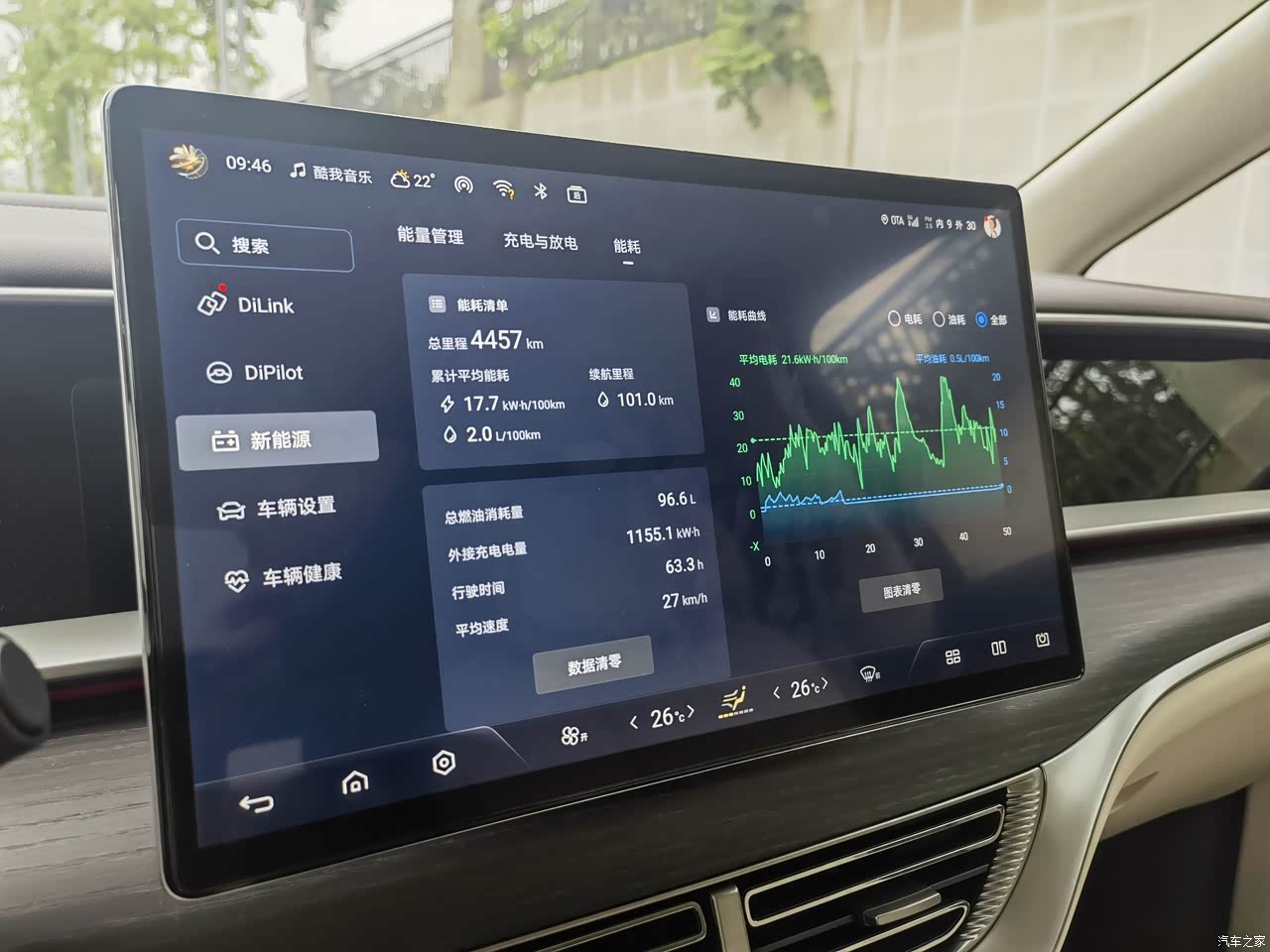 插电式腾势 D9 的续航能力令人满意。在日常用车频率较高且多为中短途的情况下,车辆的纯电续航能力能够满足需求,大多数时间可以使用纯电动模式,降低了用车成本。目前我还没有跑长途,基本都是用电,电耗在17.7kwh,油耗在2.0L,这对于一款大型 MPV 来说是非常出色的表现。