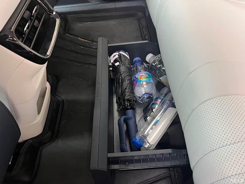 除了基本油车的扶手箱、手套箱以外,多了中控底下的掏空, 扶手箱底下的抽屉(可以放4瓶水),还有二排座椅底下的抽屉(平时放缩骨伞不错的)收纳空间挺多。挺大