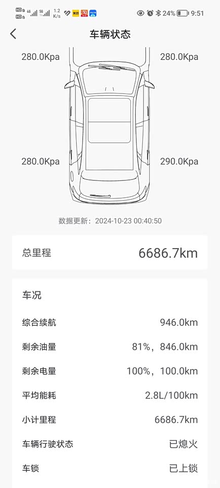 续航和厂家宣传一样…很不错…馈电油耗也和厂家标定的一样