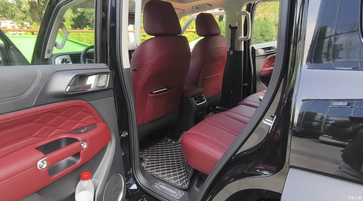 车内内饰用料可以,手能摸到的门板、中控台都是软包的,座椅、方向盘都是真皮,颜色也是选了媳妇喜欢的红色,这个红色看着比黑色的内饰有质感,看着高级一点,后期重新安排个颜色搭配的脚垫应该更有感觉