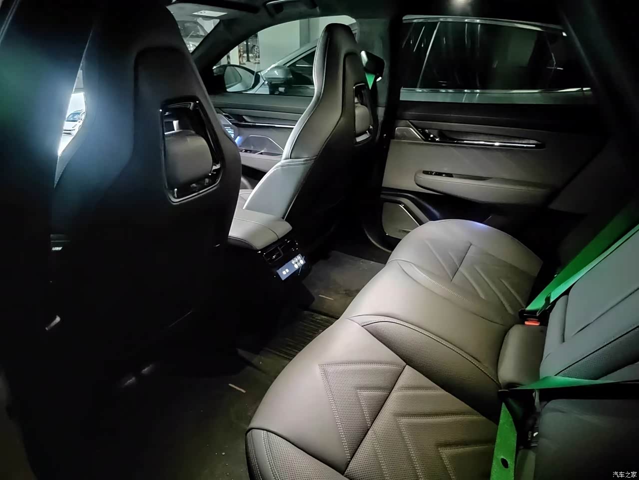 内饰选的铂灰配色,绿色安全带,很显年轻,纳帕真皮质感很好,车内装饰很合计,很显车内质感