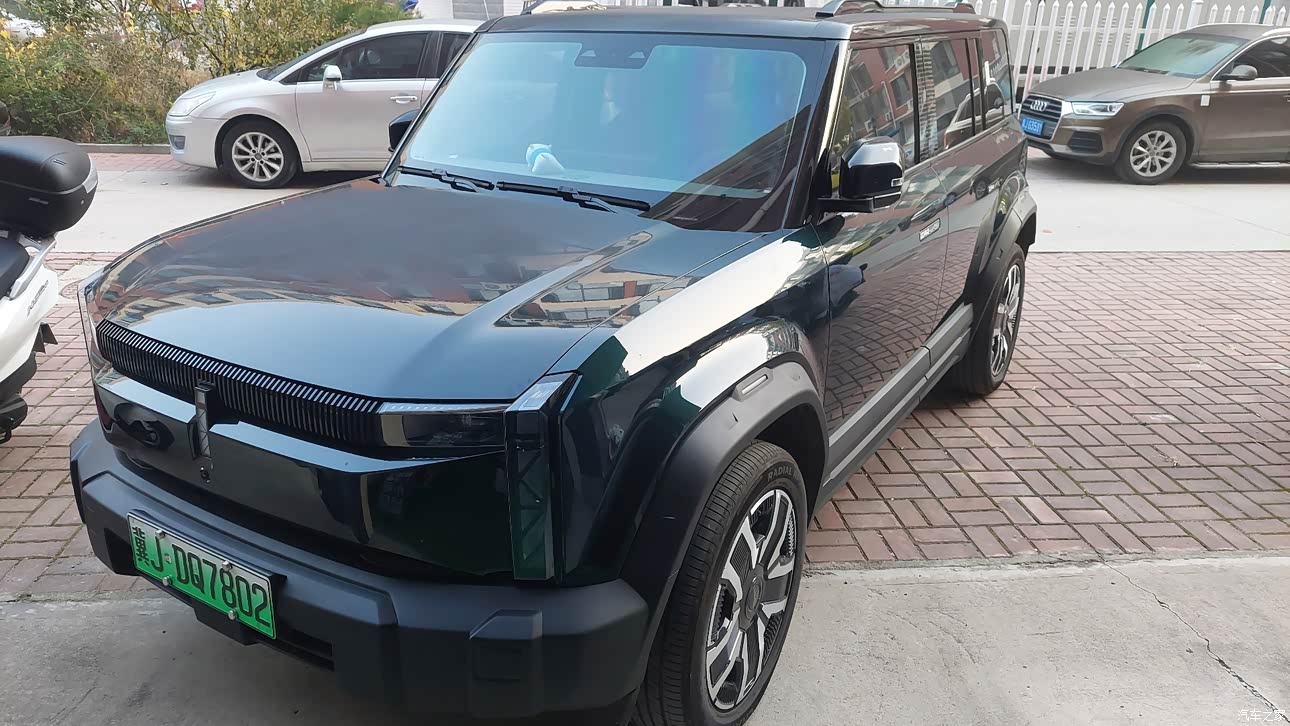 我的车整体车身采用墨绿色,不是很高调,看起来比较沉稳有内涵,车轮和车身的整体比例很协调,方盒子车身很符合当下的潮流,车头造型简约有力量不谄媚也不高冷,方方正正比较符合我的审美,前挡风玻璃视野左右和前方比较开阔,但是由于车身太高,盲区也比较大,好在有雷达