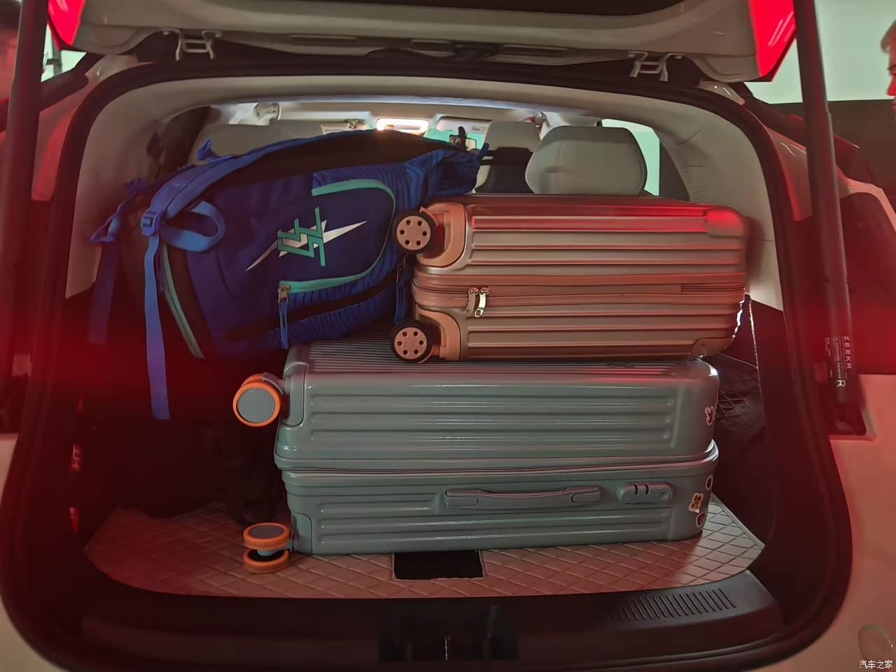 无论是车内空间还是后备箱车空间都不是他的卖点,这辆车是五座的,前排,舒适度还可以,后排的话加一个婴儿座椅就两个成年人坐着比较拥挤的,但是勉勉强强的还是可以为家用的,但是如果是长时间的作为拉孩子的车,并且还要有很多家长的话,这辆车不是首选,这辆车大的用车场景感觉还是一些单身的青年男女在城市里用来通勤,或者是一家三口带带娃,郊游郊游面上展示了两种状态,一个是日常去超市购买一些小东西,放在后备箱,另外一个呢,就是带上家人出远门的时候,车后备箱装两个皮箱,一个书包基本就满了