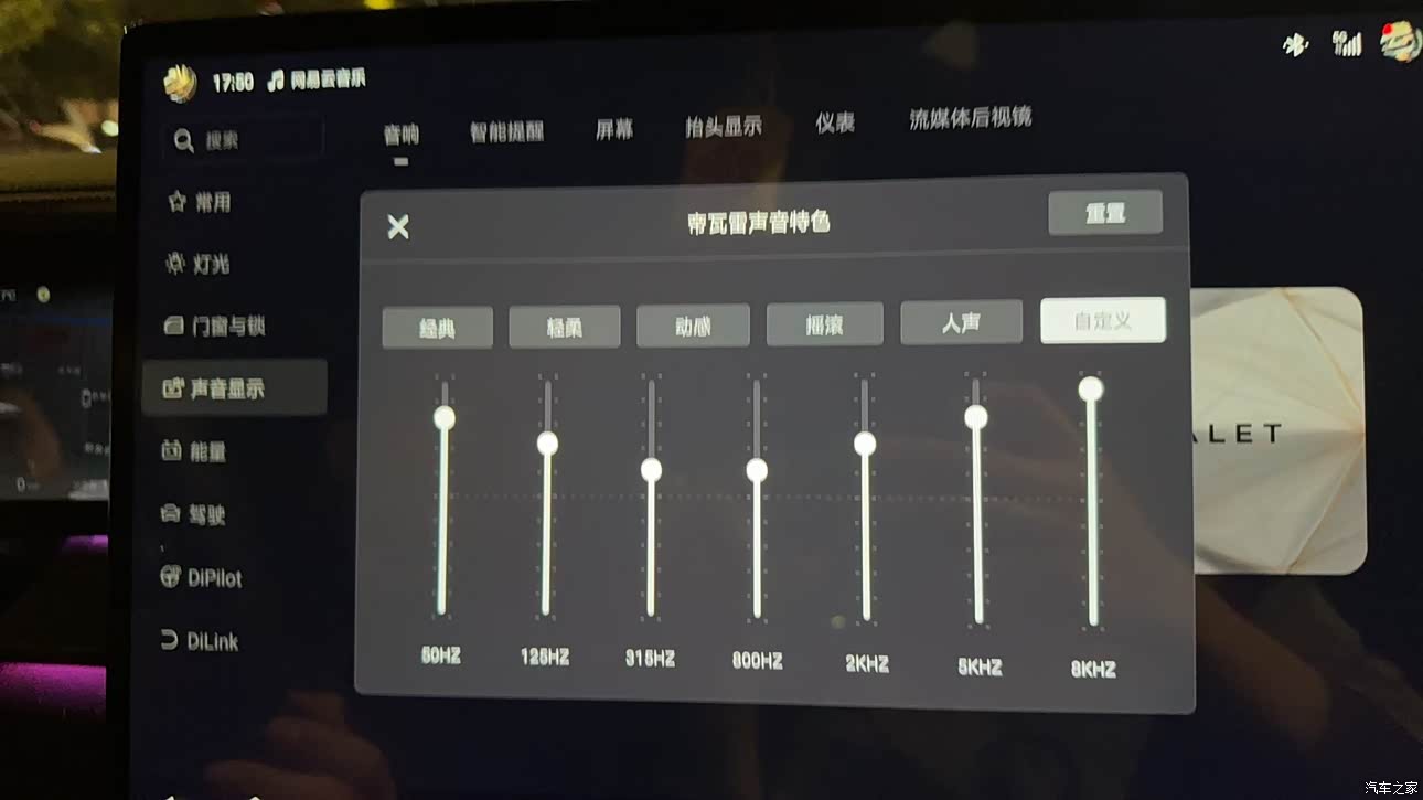 手能摸到的地方都是手感很好的真皮,水晶档把质感拉满,pro和max氛围灯比顶配少了几个,氛围感略逊一点。20个喇叭的帝瓦雷音响带来的低音效果浑厚,但是不轰头,人声效果要略逊于s90的宝华韦健,但是通过自定义的音频调整,也能追赶上!顺便分享一下我正在用的自定义音响方案。车内的新车味道两天就散掉了,家里有孕妇、宝宝的也不用担心新车甲醛。但是帝瓦雷音响的大面板有个硬伤,大太阳天气容易反光在前挡风玻璃上,略微有点影响视线,希望后期厂家能给出解决方案。