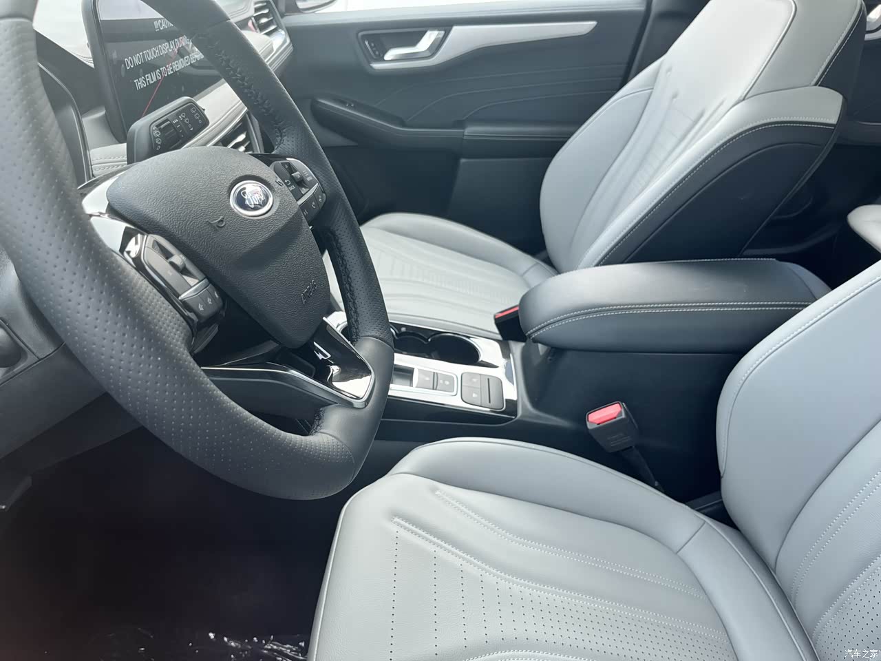 进入车内,福特锐际的内饰设计同样令人印象深刻。内饰整体给人一种精致且温馨的感觉,皮质包裹的方向盘握感极佳,中控区域布局合理,各种按键和旋钮触手可及。最引人注目的莫过于那块中控屏,显示效果清晰细腻,操作起来也十分顺滑流畅。座椅材质既柔软又透气,乘坐舒适性相当不错。车内储物空间丰富,各种小物件都能找到合适的存放位置,设计非常人性化。