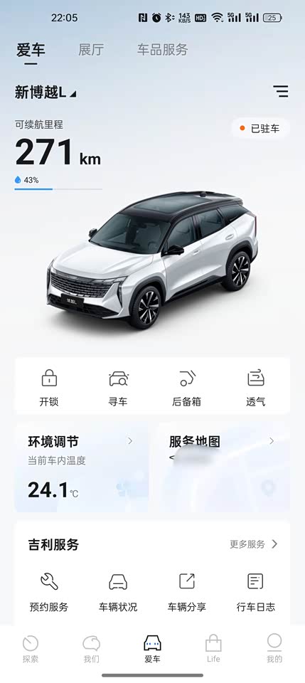 可以开关空调,解锁车辆,开关窗、开后备箱、寻车、开座椅加热等。也可查看行车日志,车辆状态等。 这里要吐槽一下app吉利服务里的软件商城,一个能下载的都没有,打开以后啥都用不了。你干脆软件商城别给我显示不好吗?这不恶心人嘛。 还有车辆分享,一家肯定不止一个人,现在2000多元的电动车都支持授权多人控制,你十几万的一个车,不能车辆分享。app简单就能适配的东西,非要搞出个高低配。这点很无语,我不支持的功能,请给我去掉好吗?别在这放着碍我眼。