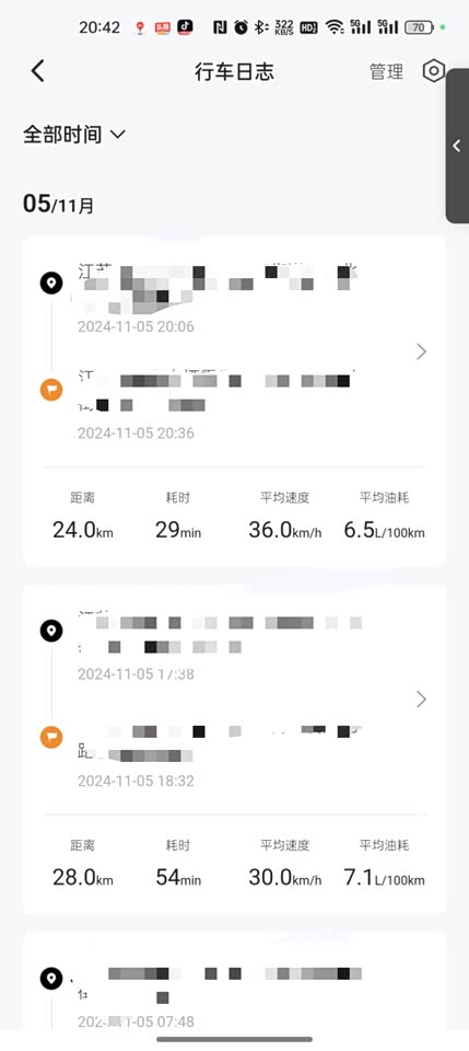 快速路油耗不高,6点多到7个油。我跑的路短,长的话应该能到5个。
