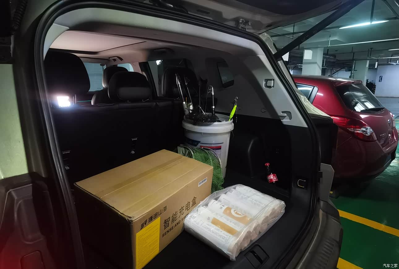 主副驾座椅一开车门自动向后移动,上车十分方便;后排座椅空间大,1.8米山东青年座下仍有15厘米以上距离;后备箱是向上开启电动尾门,存放渔具、食品、睡袋等足够用。第二排座椅放倒后可以铺一充气床垫,做简易房车使用。