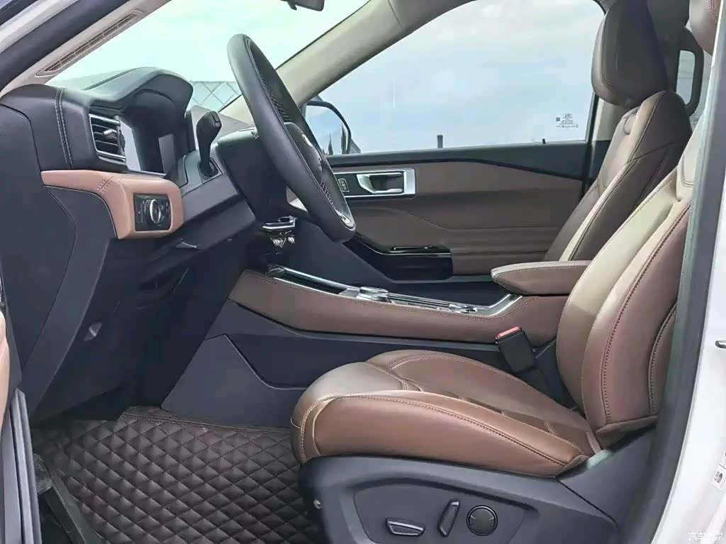 内饰方面,探险者采用了简约大气的设计风格。中控台布局合理,各种按键和旋钮操作方便。座椅采用高品质的皮革材质,坐感舒适,并且具有加热、通风等功能。车内采用了大量软性材质和皮革包裹,提升了整体的质感。仪表盘采用全液晶显示屏,显示清晰,信息丰富。中控屏尺寸较大,操作流畅,功能齐全,支持导航、蓝牙等功能。车内还配备了全景天窗,增加了车内的采光和通风效果。
