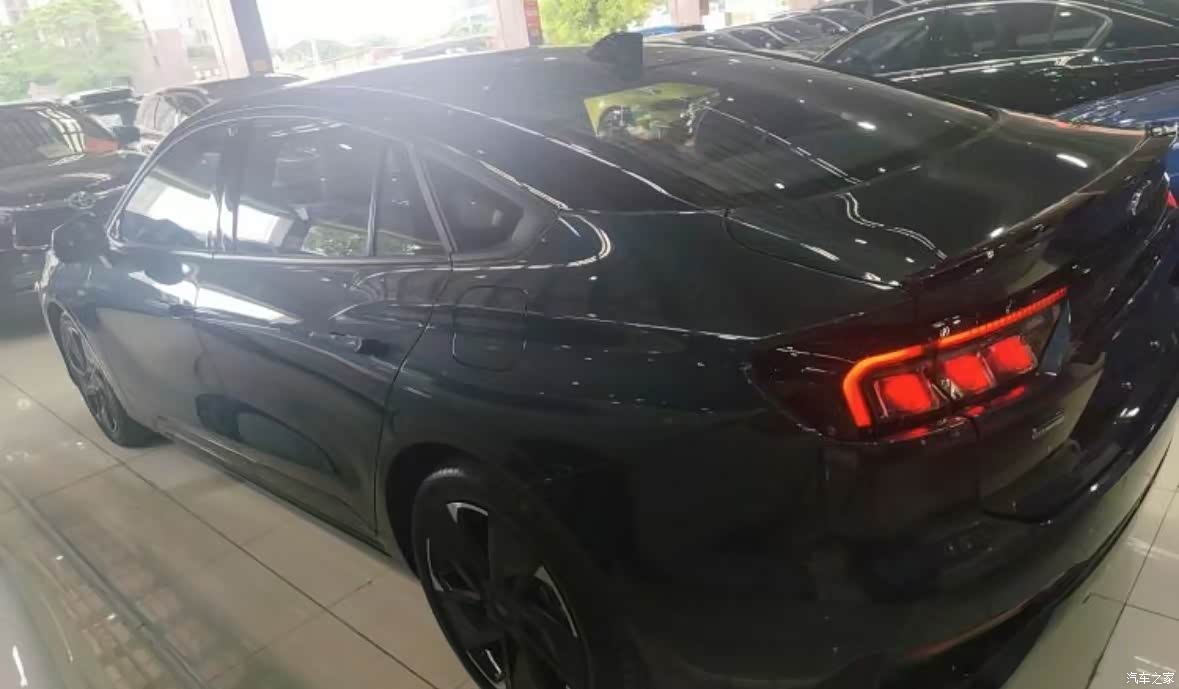 前保险杠下方配备了雾灯区域,并采用了黑色装饰件进行点缀,提升了车辆的前脸层次感。腰线从前翼子板一直延伸至尾灯处,线条流畅而富有力量感,勾勒出车辆的运动姿态。车窗边框采用了黑色装饰条进行点缀,与车身颜色形成鲜明对比,提升了车辆的时尚感。尾灯组造型与前大灯相呼应,照明效果出色且辨识度极高。排气布局:双边共两出的排气布局不仅提升了车辆的运动感,还彰显了其强大的动力性能。后备箱盖:后备箱盖线条层次感分明,与车尾整体造型相得益彰,提升了车辆的视觉效果。外观设计上呈现出一种动感而优雅的气质。无论是整体造型、前脸设计、车身侧面、车尾设计还是细节处理都表现出色,为消费者提供了一款兼具美观与实用性的中型轿车。