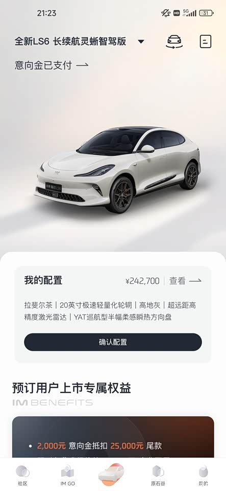 从去年开始准备买车到现在,看过了很多很多汽车,智己LS6的性价比是真的好。同时期还对比过极氪的7x(一些必备的豪华配置都要加钱),特斯拉的 model y (依旧是很毛坯),小鹏G6(老婆始终觉得丑),乐道L60(内饰也太简单)。最终在20万出头的价位里选择了最能打的小六。