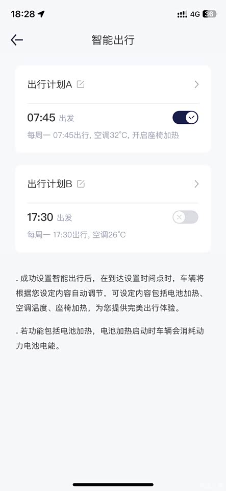 现在冬天了,在手机app里提前设置好出行计划,每天上车时车里都是暖的