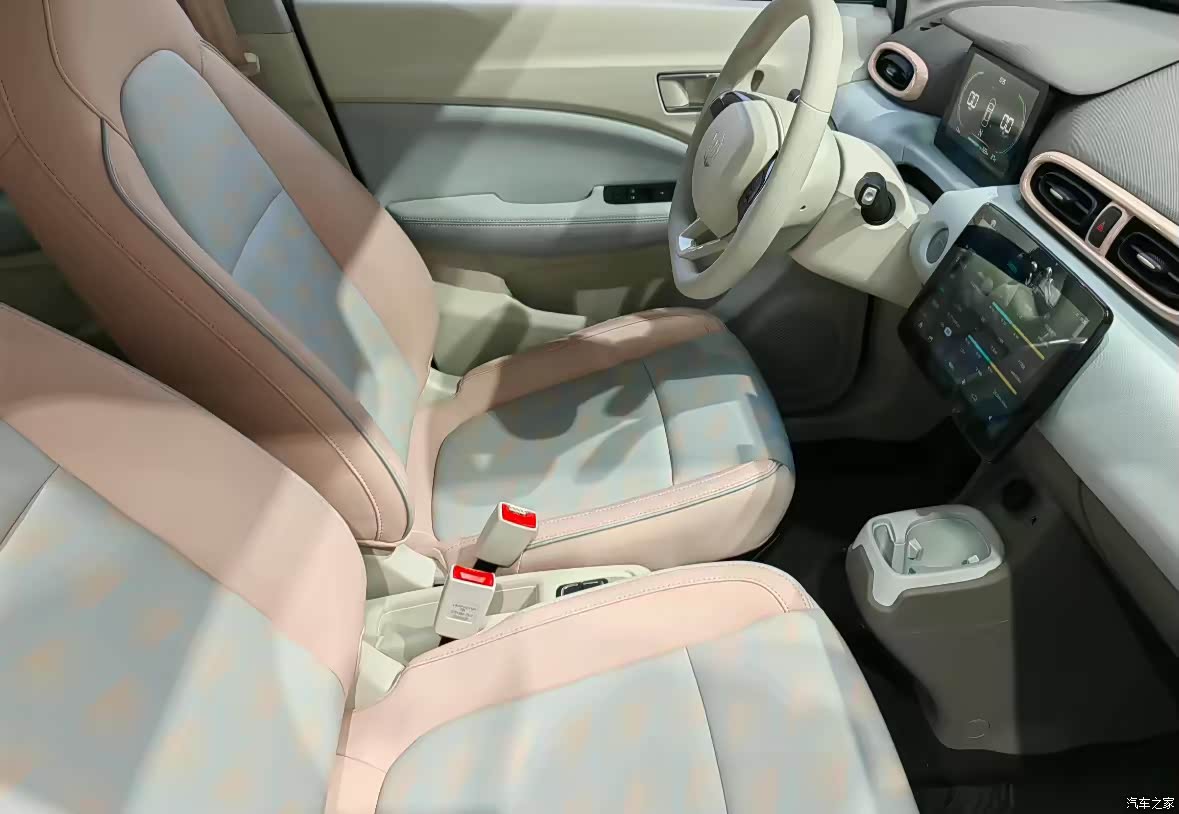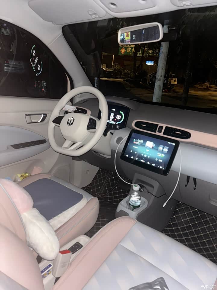 车小,好开好停,有倒车影像雷达、双气囊,还是5门4座,还有手机远程控制,内饰颜色,蓝粉色超美,皮质座椅让车没有那么廉价的感觉,档次提升了!