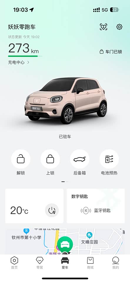 零跑T03的内饰配置丰富且实用。其中,数字化仪表盘和中控台触控屏幕提供了丰富的驾驶信息和功能控制,使得驾驶更加便捷和安全。在噪音控制方面表现良好。在城市代步中,路面传来的声音较小,车内播放音乐时基本可忽略。然而,在高速行驶时,风噪和胎噪可能会稍显明显。空调系统表现不错,制冷效果迅速且稳定。在炎热的夏季,车内温度可以迅速降低至舒适的范围内,还可以手机远程操控,在炎热的夏天可以提前开启空调。