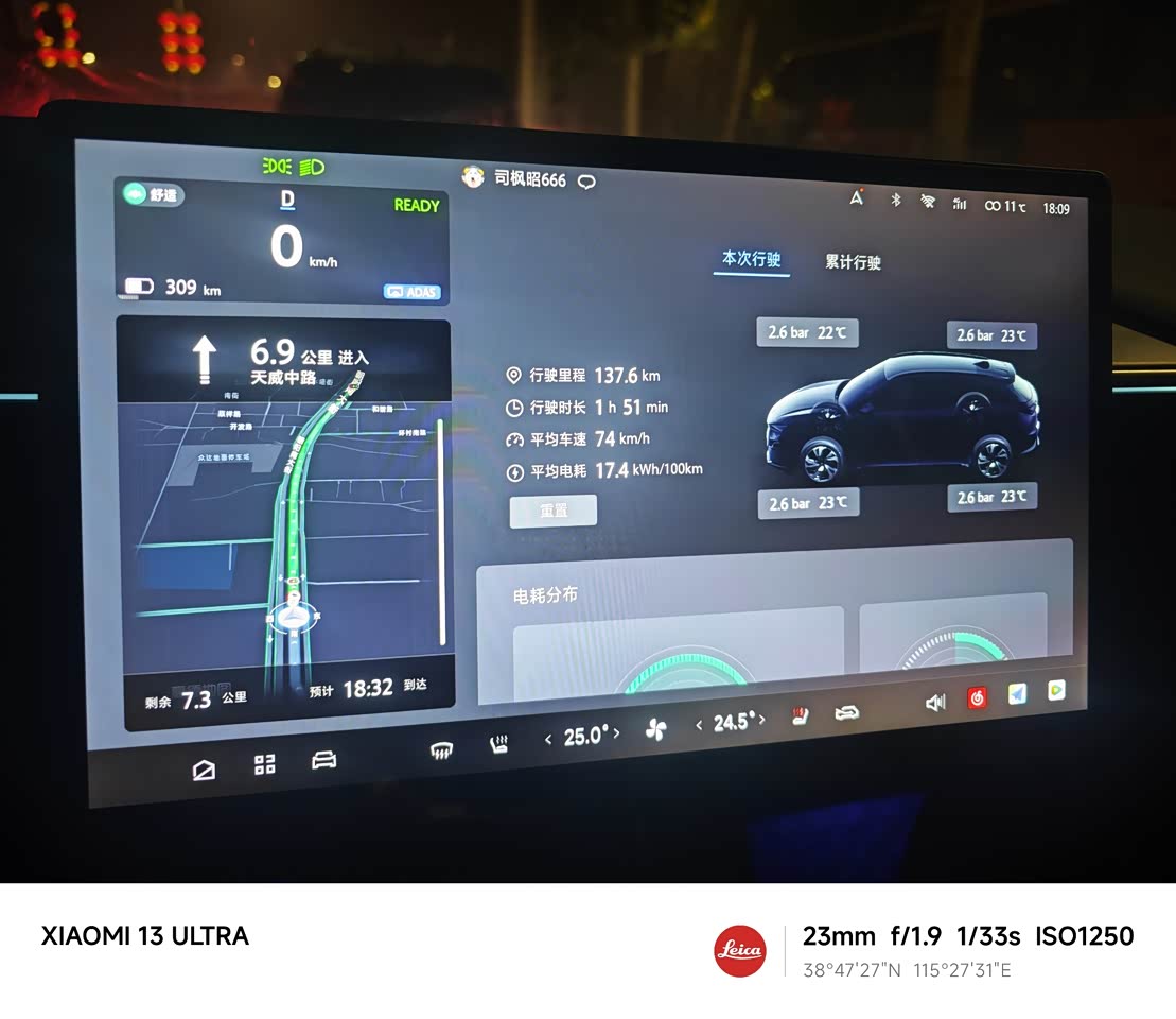 现在的天气,高速定速110-115,全程没开空调,是不是的除雾,全程音乐播放,电耗17.3-18.3,随时里程增加不断下降,国道14-15