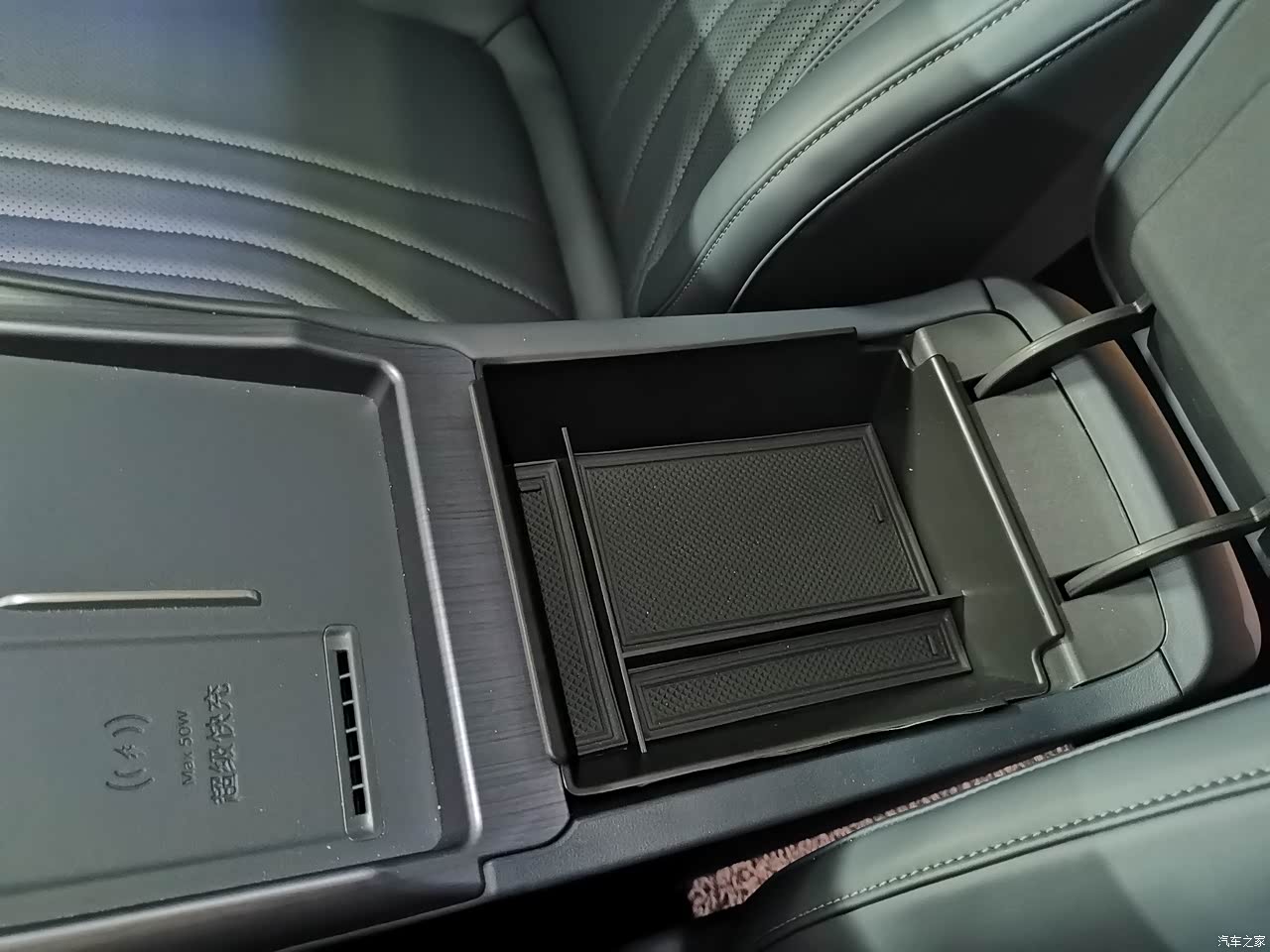 后排座椅底下有个小抽屉,这应该是所有同类型车里面的首创了吧?加上前面扶手箱底下的抽屉,一前一后够放下孩子不少玩具和零食了。 自己买的固特异丝圈脚垫厚实,同时还不影响抽屉开关,我另一辆车上也是用的同款,8年没有任何破损或其他问题,推荐给大家。 前排中央扶手箱里加了淘宝买的一个隔层,弥补了没有眼镜盒的遗憾。