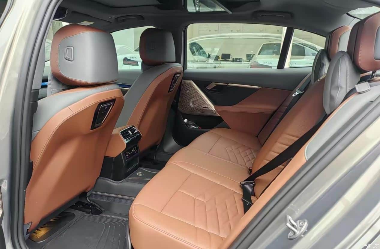 毕竟也是一台地地道道的C级豪华轿车了,所以说在空间这一块的表现也是相当出色的,今天试驾之后这台车子的空间更是给我留下了非常好的印象,我对于后排的空间要求其实不是特别高,但宝马i5的后排还是相当宽敞的,其实相对来讲我还是更喜欢它的全景大天窗,整个的天窗面积相当大,打开遮阳帘之后显得车内就特别通透,而且整体的档次感也非常高。