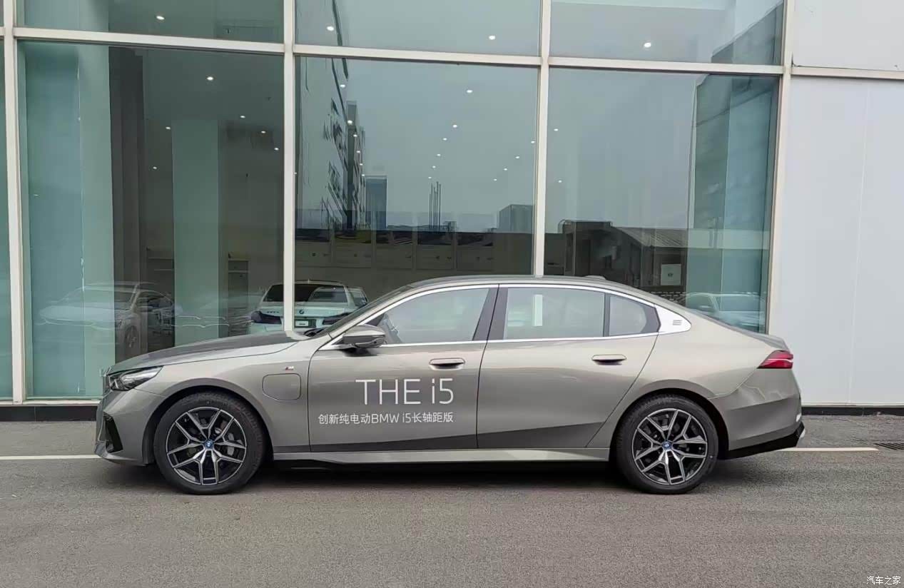 我觉得宝马i5的外观设计看上去还是挺霸气的,首先在车身尺寸上就比较占优势,五米多的车长看上去确实是挺有气场的,而且这个车灯的设计也特别漂亮,点亮之后的效果看着相当犀利,包括这原厂轮毂的造型看着也非常运动。