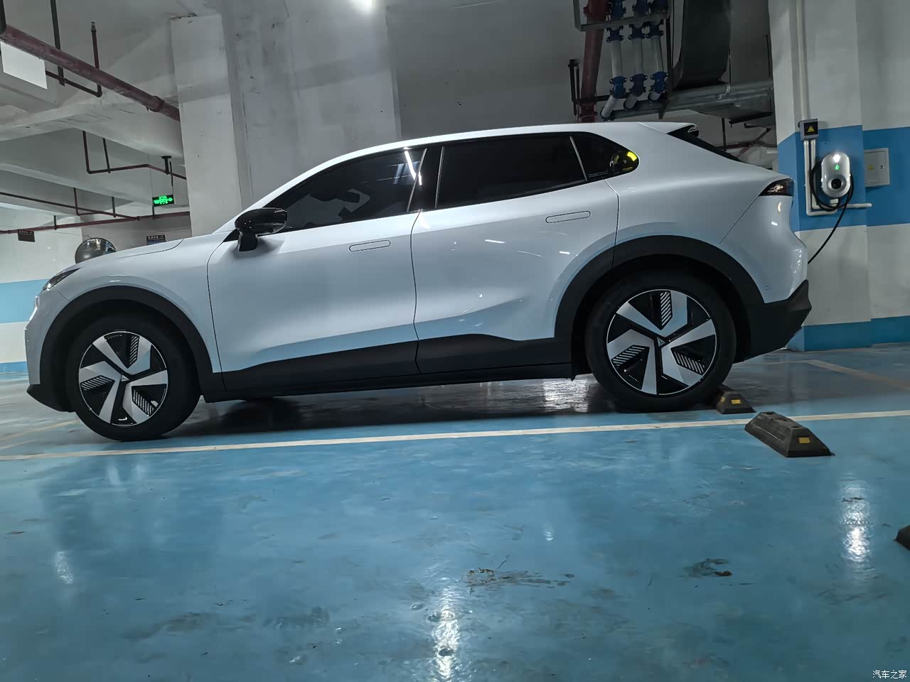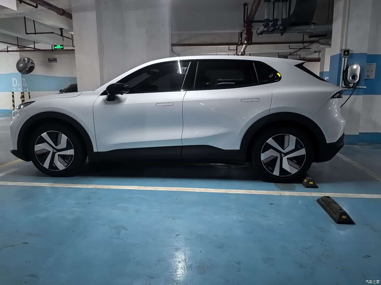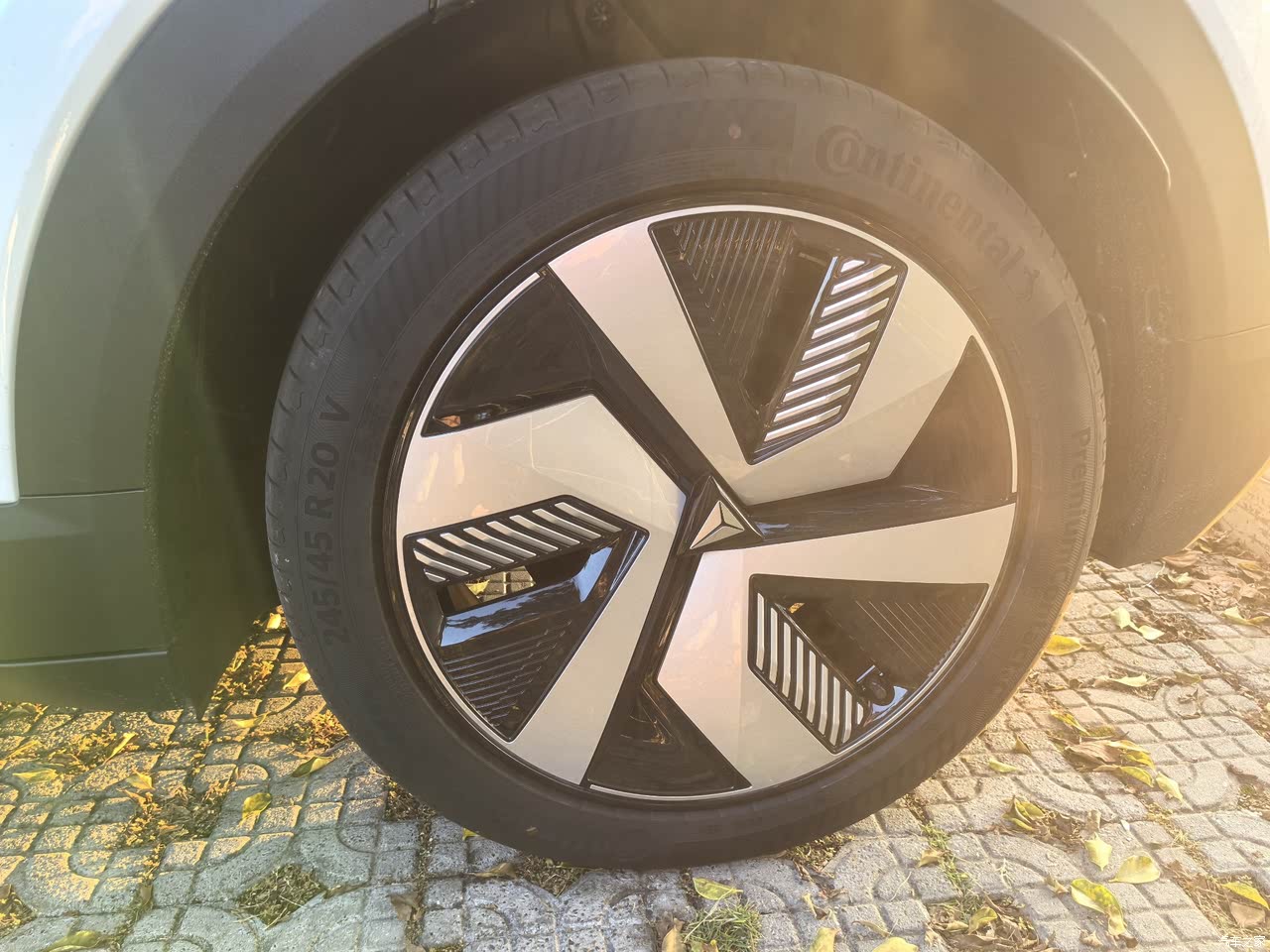 我是选装了20寸马牌轮胎,官方解释为了降低风阻,所以配了轮毂盖,如果是一体的造型就更好了,整个车身腰线看起来还是比较时尚运动的。