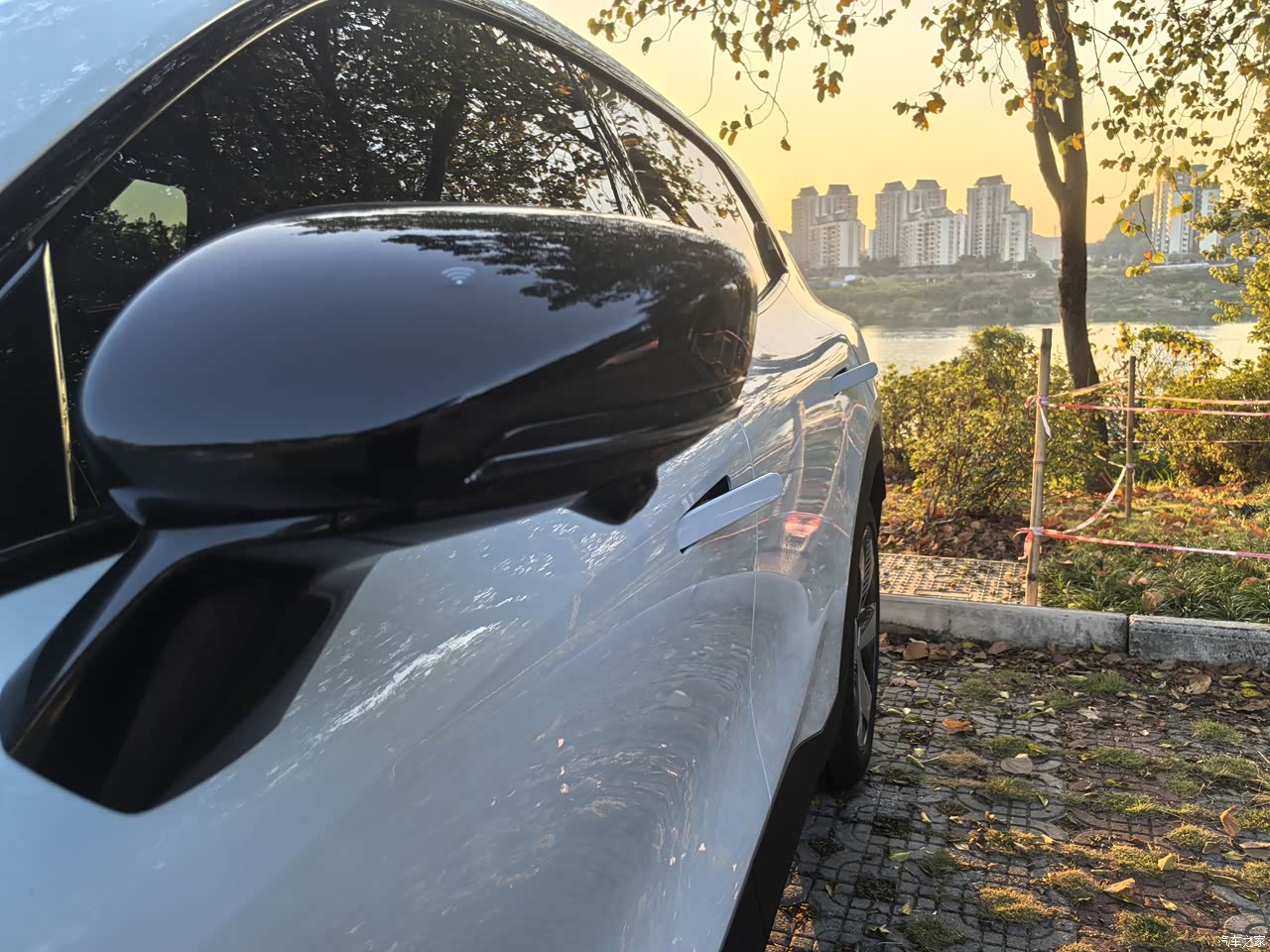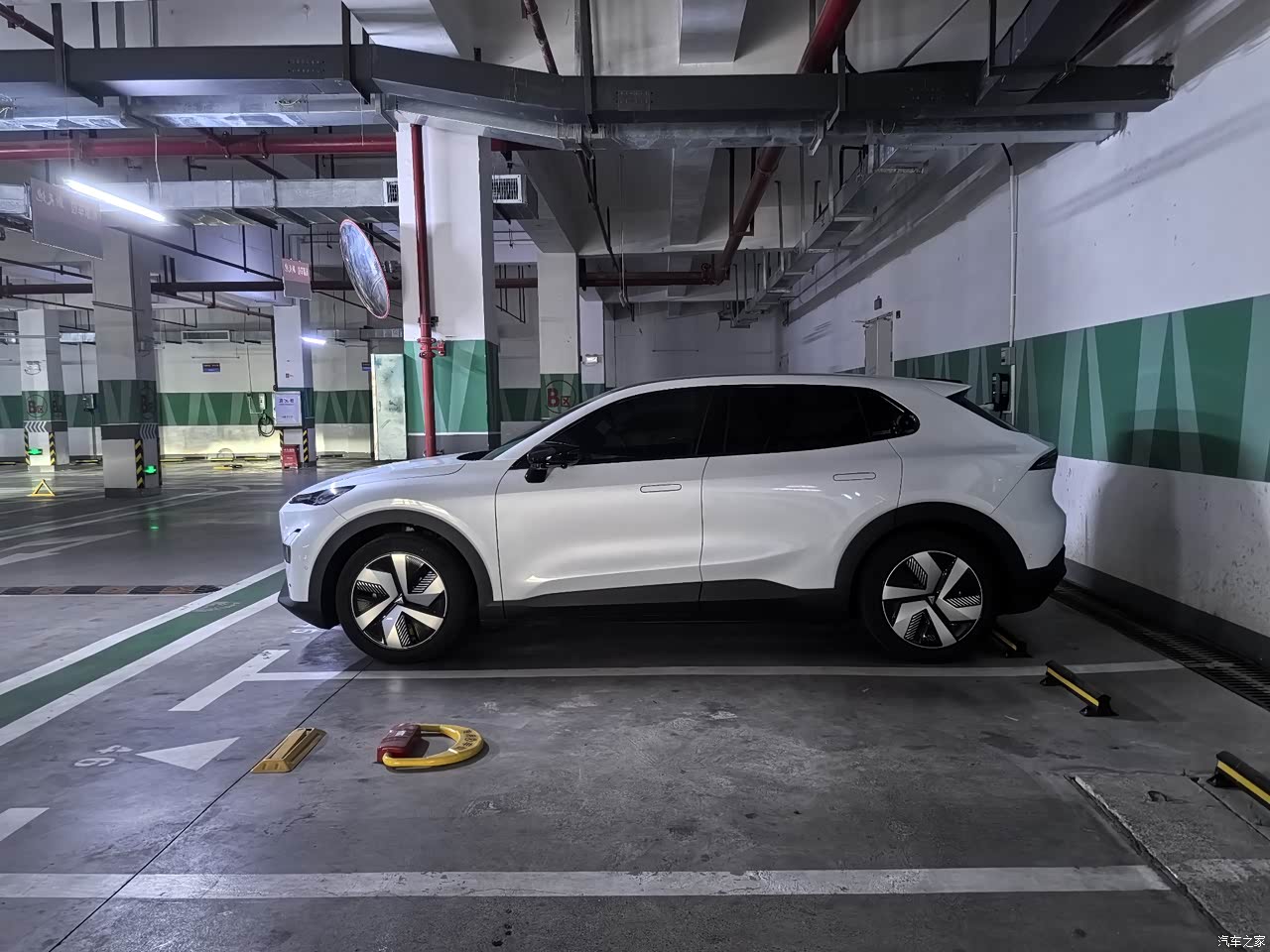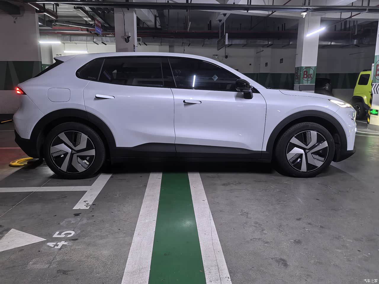 我是选装了20寸马牌轮胎,官方解释为了降低风阻,所以配了轮毂盖,如果是一体的造型就更好了,整个车身腰线看起来还是比较时尚运动的。