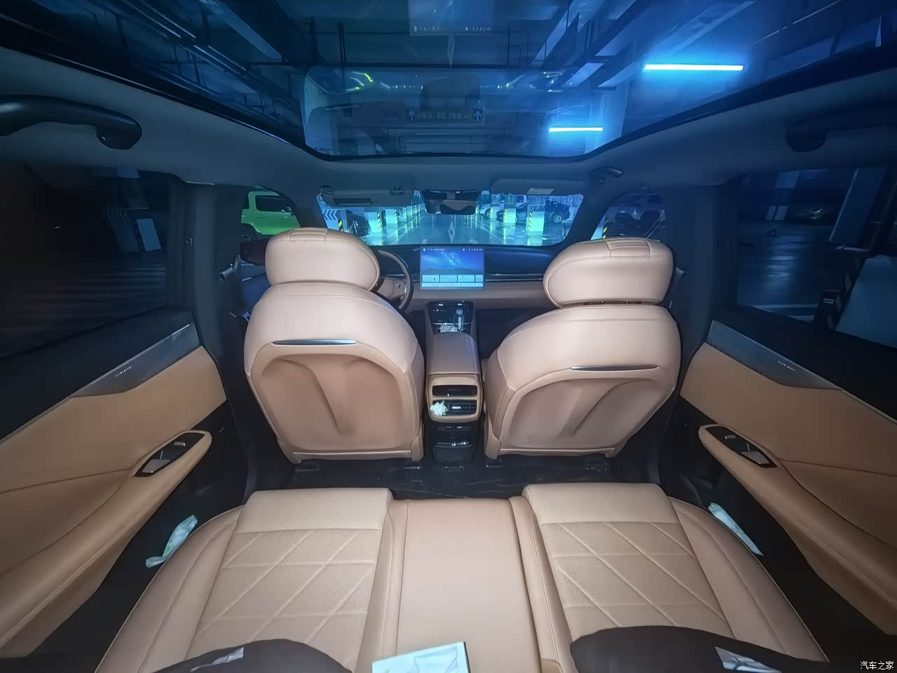 副驾设计了一个腿托,所以手套箱被取消了,中央扶手箱很深,主副驾座椅背后也取消了储物袋,四个门板储物格属于中规中矩。