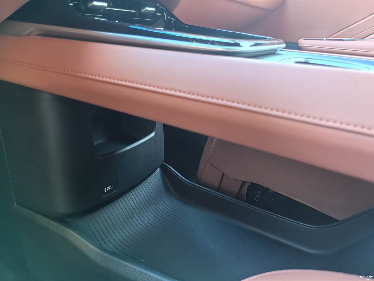 空间看似一般,但是贵在设计了几个亮点,中央扶手箱标配了空调通风口,冷饮热饮可以自由安排,中控位置也设计了50w无线充电,并也带有空调通风口,保证散热,在中控下方还隐藏了一个小格子,适合放一些证件。
