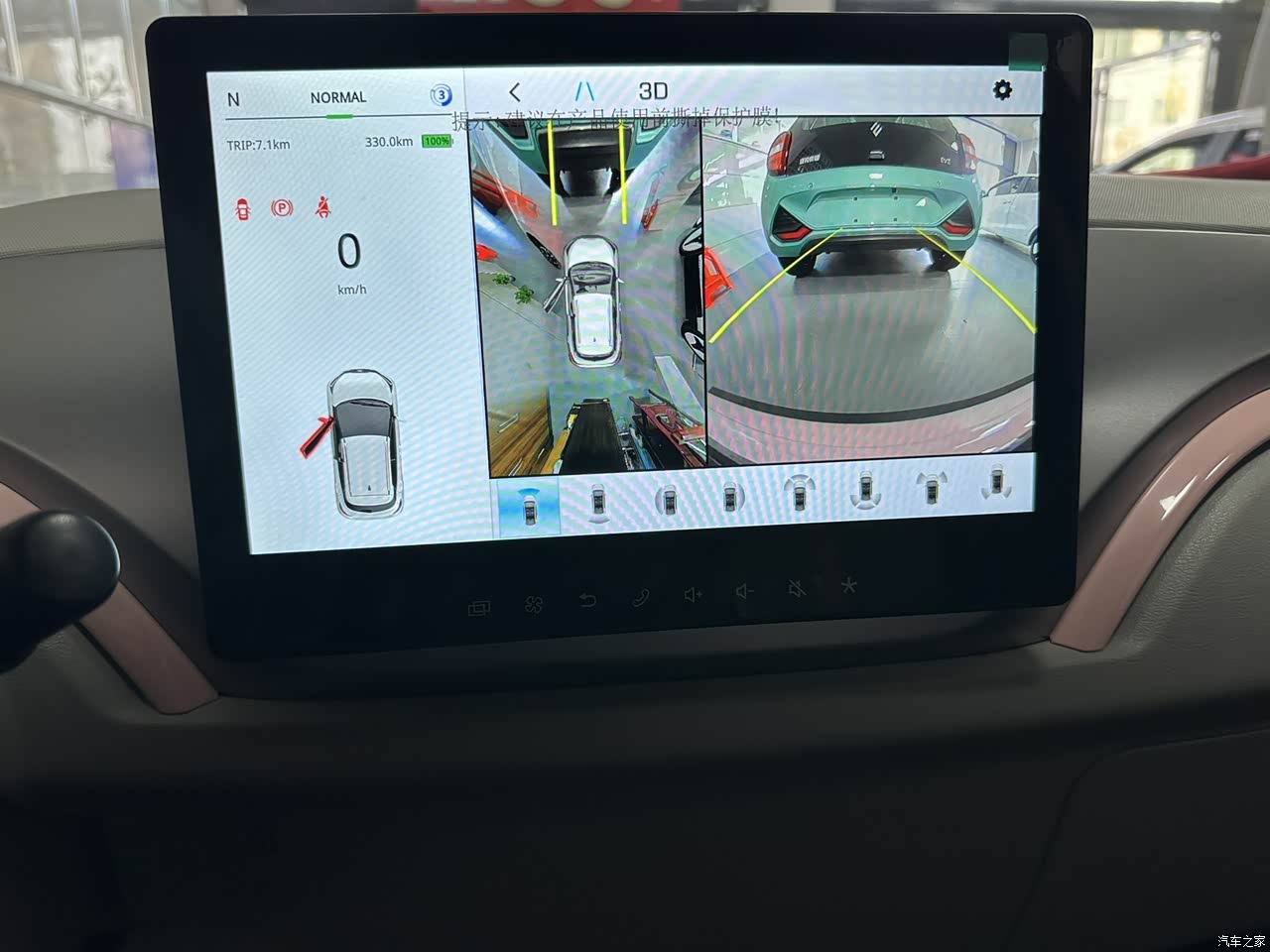这个车型高配版有做到一个360的全景影像 对新手司机是相当友好的 车辆前后左右都能实时看到车辆状态 距离障碍物过近还有到叮叮叮的提醒声 做到了声画同步的提醒 车辆是有做到手机互联的功能 车机同步 还有到智能语音系统 说是科大讯飞的啥啥啥系统来着 你直接呼叫小易小易 再发出你的指令就可以 还有一点就是车辆还支持手机远程操控 手机下载江铃新能源APP 可以在手机上远程操控 开锁关锁 开空调 车子实时的状态 车子多少电量 车子停在哪里都能够看到……