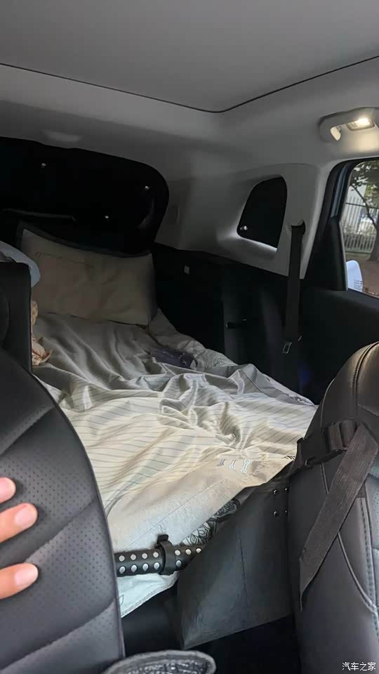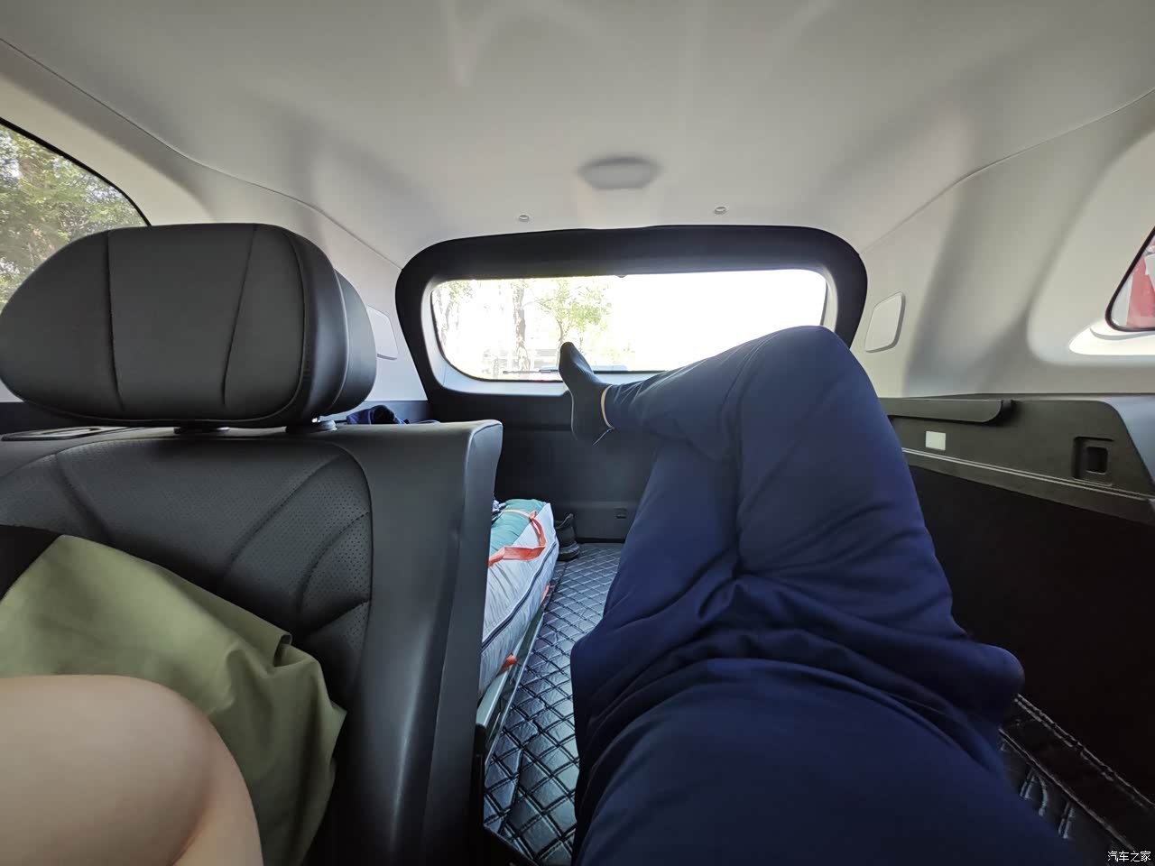 后排放倒直接变2米大床。这是放倒一个座椅,在车上午休的状态,也不影响后排储物。