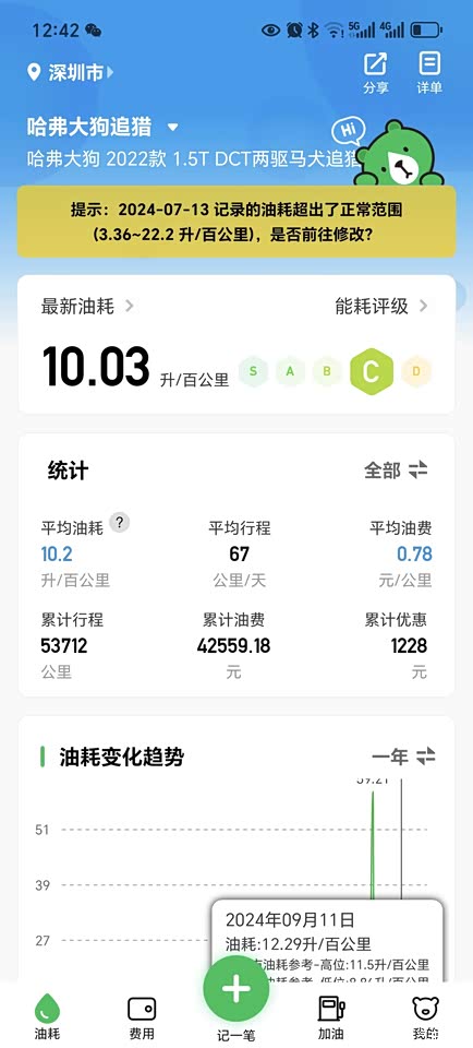 我一般高速比低速多,这样的油耗多少都有点偏高,驾驶习惯又是一方面