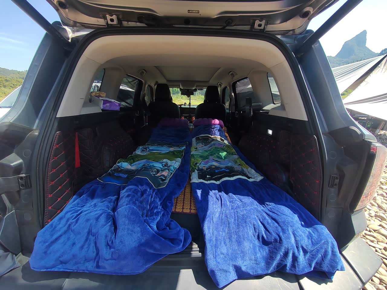 在使用大狗的过程中它的通过性比较满意,开上它露营,强度越野,过水都比较不错,我升高165cm,后排放倒放上凉席气枕,窗户套上丝袜打开窗户晚上挂上风扇就在车里睡觉很有安全感,比帐篷睡得踏实多了,还有它的自动雨刮很不错,挂到雨刮二档伸手外面锁车,下雨自动关门窗和天窗,最喜欢露营下雨,雨水打在全景天窗点点滴滴的响声,那是大自然的声音,非常助眠,很舒服,如果是插电混动就好了,可以开驻车空调,那露营就更舒服了!