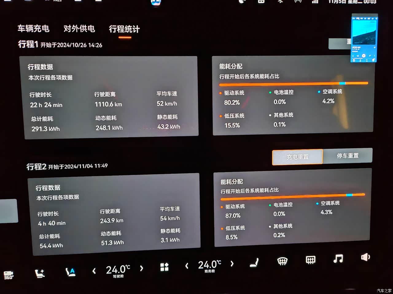 跑了趟赣州到深圳的高速,上高速就用120kmNPZ自动巡航,全程23℃空调开着,按摩100公里开一次用着,中途跑了272公里,用电66%,在第三方充电桩补能14分钟,充了20度电。后续到达终点充电前跑了244公里,还剩11%电。 总计516公里用了116度电。平均22。 我感觉那么大的车,这电耗算不错了,高速补能也方便。