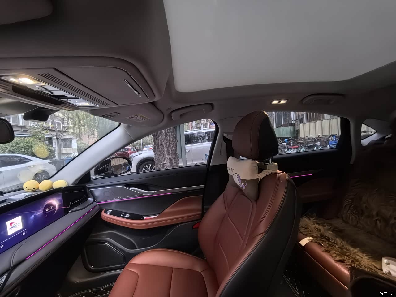 虽然是燃油车,但车内的科技感还是向着新能源在靠近。超大尺寸的中控屏和副驾娱乐屏一体化设计,进入车内的一瞬间,仪式感十足,视觉效果非常震撼。更换了8155芯片的车机,中控屏的操作很流畅,反应灵敏。通过语音控制功能,可以轻松地实现调节空调温度、切换歌曲等操作。安全配置方面,主动刹车和紧急避让很实用单位功能,其中主动刹车在小区内启动过2次,都是有小朋友跑到了车前面,虽然我认为自己也能刹住,但车辆自己启动还是觉得安全性宁多不少;另外是紧急避让功能,有一次在快速路准备变道时,后车快速接近,方向盘立刻主动转了回来,明显感觉避让时的回转力度远大于平时的车道保持回转力度,后来车友说应该就是避让起了作用。最后,吐槽一点吧,尊尚自带是倒车影像,我后加了360全景。这个360能不加真的不要加,跟原车车机是不能完全兼容的,需要拆掉原车后面的镜头换上360的镜头,然后,倒车时如果叉掉360影响,那么系统会显示倒车影像不可用。而且受安装师傅手法问题,有可能出现左右摄像头钻孔不对称,导致我现在右侧能看到车轮,左侧看不到车轮。
