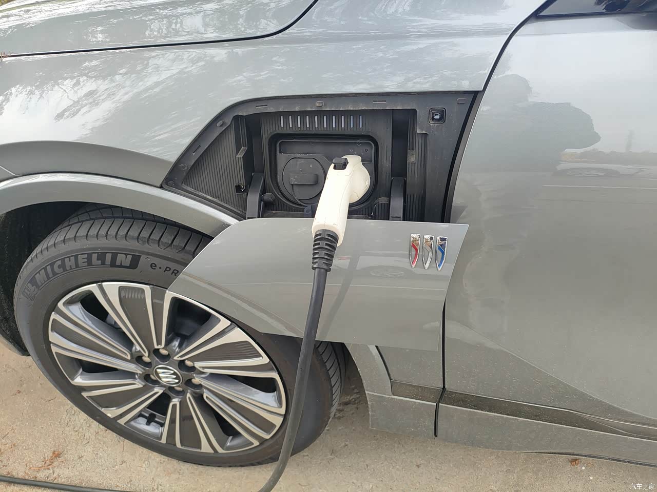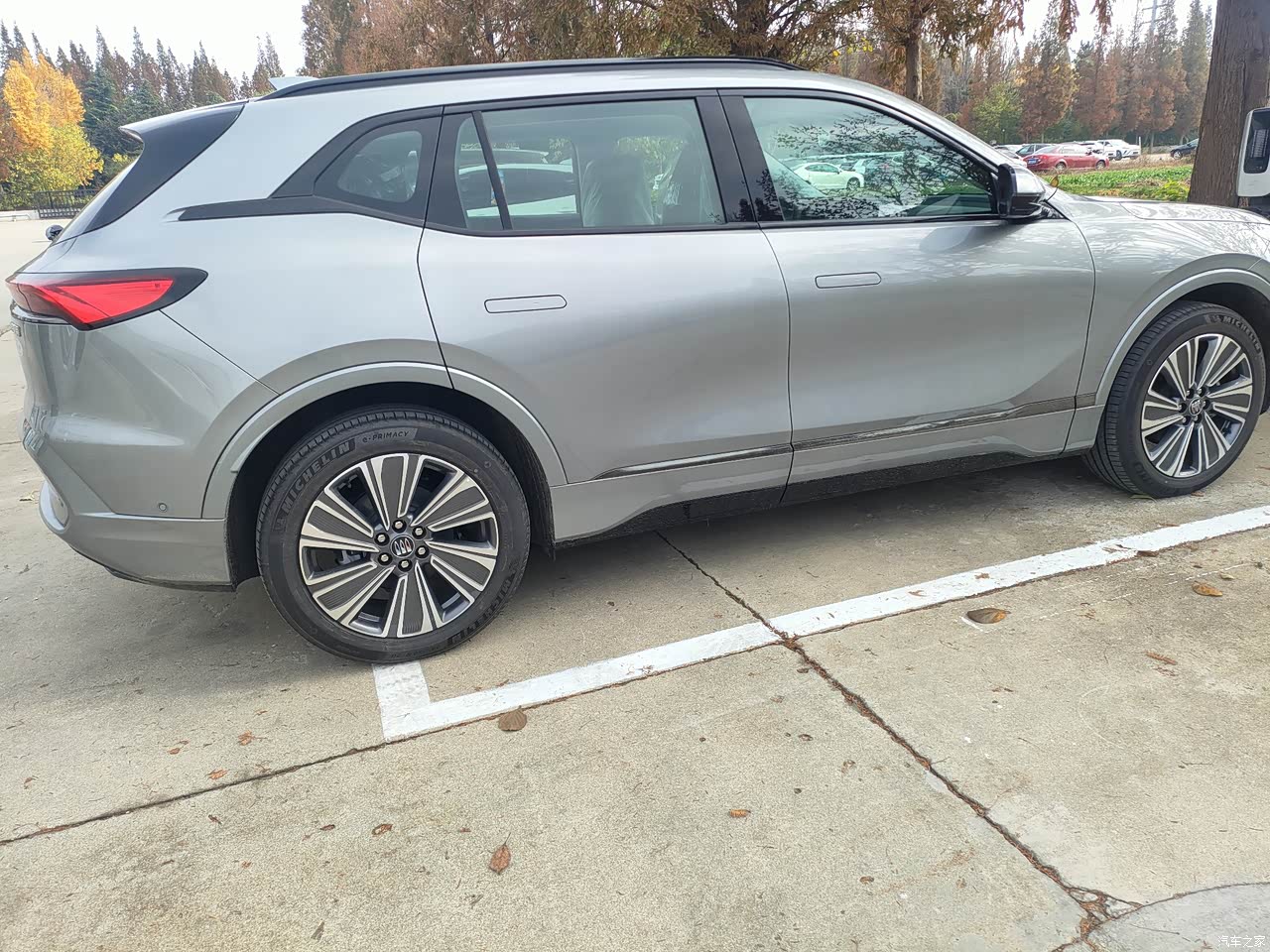 这款车子我关注了很久,刚开始我本来打算买黑色的,但是去了店里,店里只有灰色的现车,还有青色现车,我想订黑色,店里给我订不着,所以我最后选择了这款灰色车子,为什么会选择别克E5这款灰色的车子?主要是觉得灰色车子也比较耐脏,也是厂家主打的一个颜色,这款车的车体尺寸非常大,气场非常足,年轻时尚,非常适合于咱们年轻人开,还有这款车的采用20寸大轮胎。并且采用米其林的轮胎,非常静音,轮胎也宽,抓地力也非常强,跑得快,刹得住。