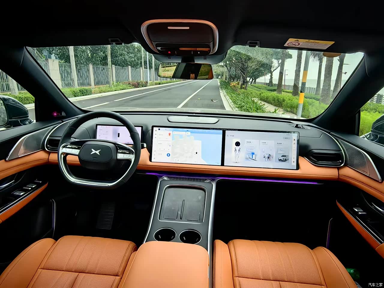 橙色的内饰,高档时尚。三块显示屏看起来干净清爽。全车座椅纳帕真皮,手感很好。主驾和副驾座椅都配有座椅按摩,和通风功能。尤其是副驾的女王座驾,有腿托,可以将座椅调到最舒服的O重力的模式,还有一个化妆镜,这都是女神们的最爱。