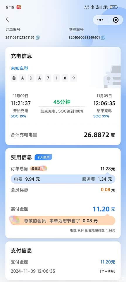 没买车位,只能在外边的公用充电桩充电,好在离家近,而且充电速度特别快4-50分钟充满