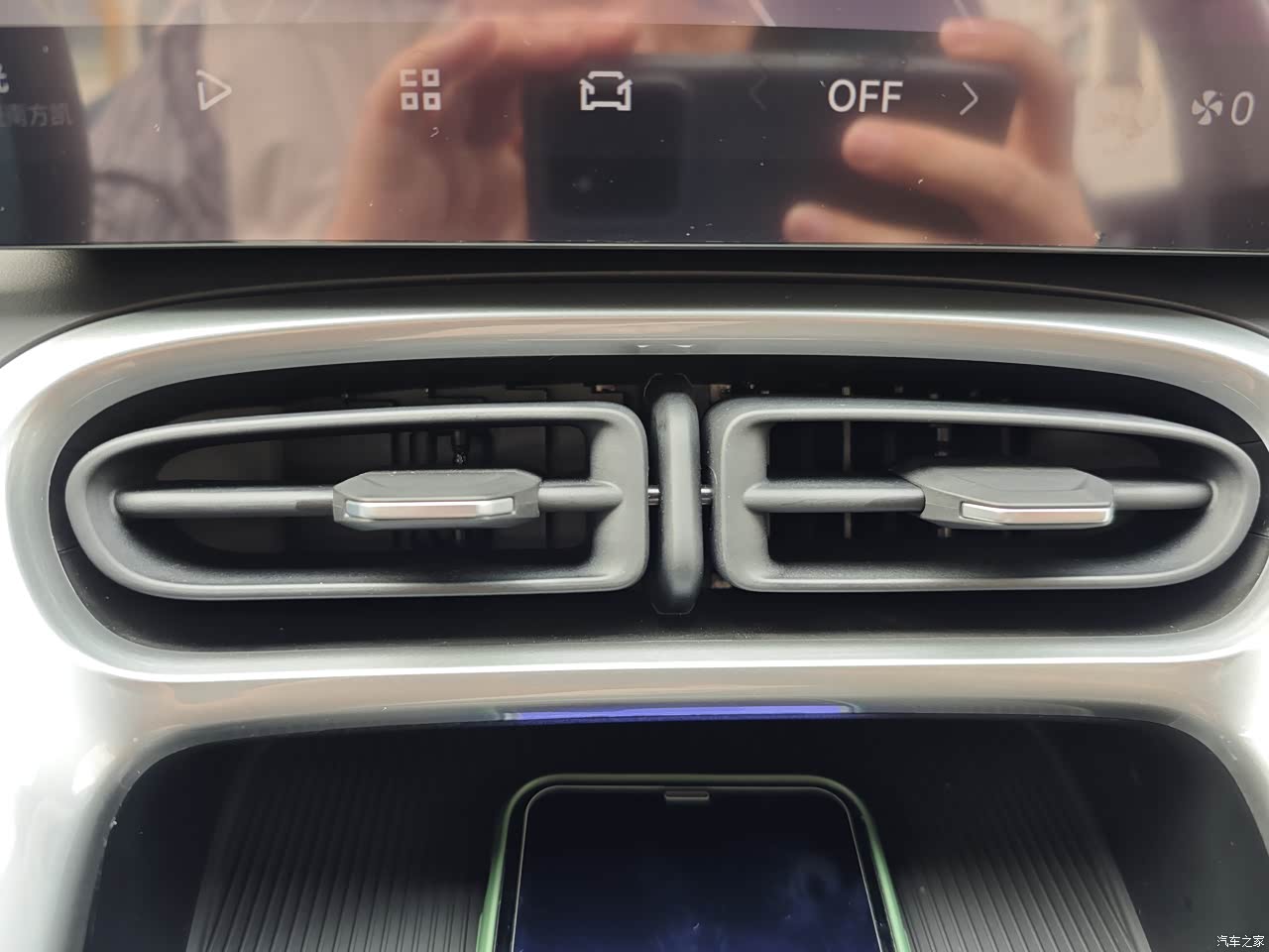 这个空调出风口设计挺好,往右侧一推就全部关闭了,不想其他车还有个单独的波轮调节开关口