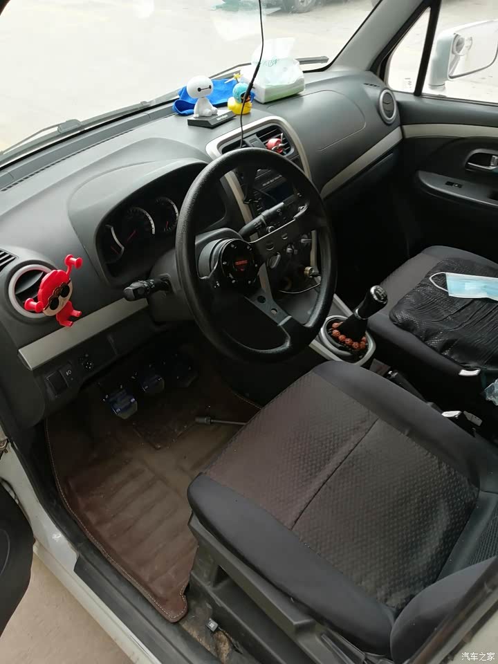 空间图主驾驶副驾驶以外非常的小!毕竟是微型车嘛!车内高度方向的内空还是可以的,坐在前排调整好坐椅后,以我1.71米的身高为例,距离车顶起码有两个半拳头,后排的空间有所不足,特别是中间地面有凸起,不适合坐大人,如果平时坐四个人,那整体上还是可以的,我平时也只有一个人开,只有节日回家的时候,一家5口刚才坐一部车,小孩还小,坐后排中间刚好,爷爷和奶奶坐后排两边,目前来说,这个车的空间刚好适合我们一家人。后备箱的空间比较大,我平常放两个折叠箱,剩下的空间,再放2个20寸的行李箱,立着放的话,挤一下没问题。后备箱空间不错