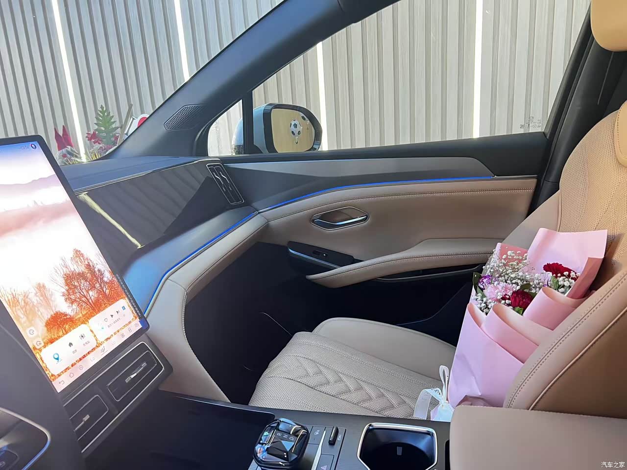 汽车外形颜值高,内饰颜色高级,车内空间很大,对有娃家庭非常友好。
