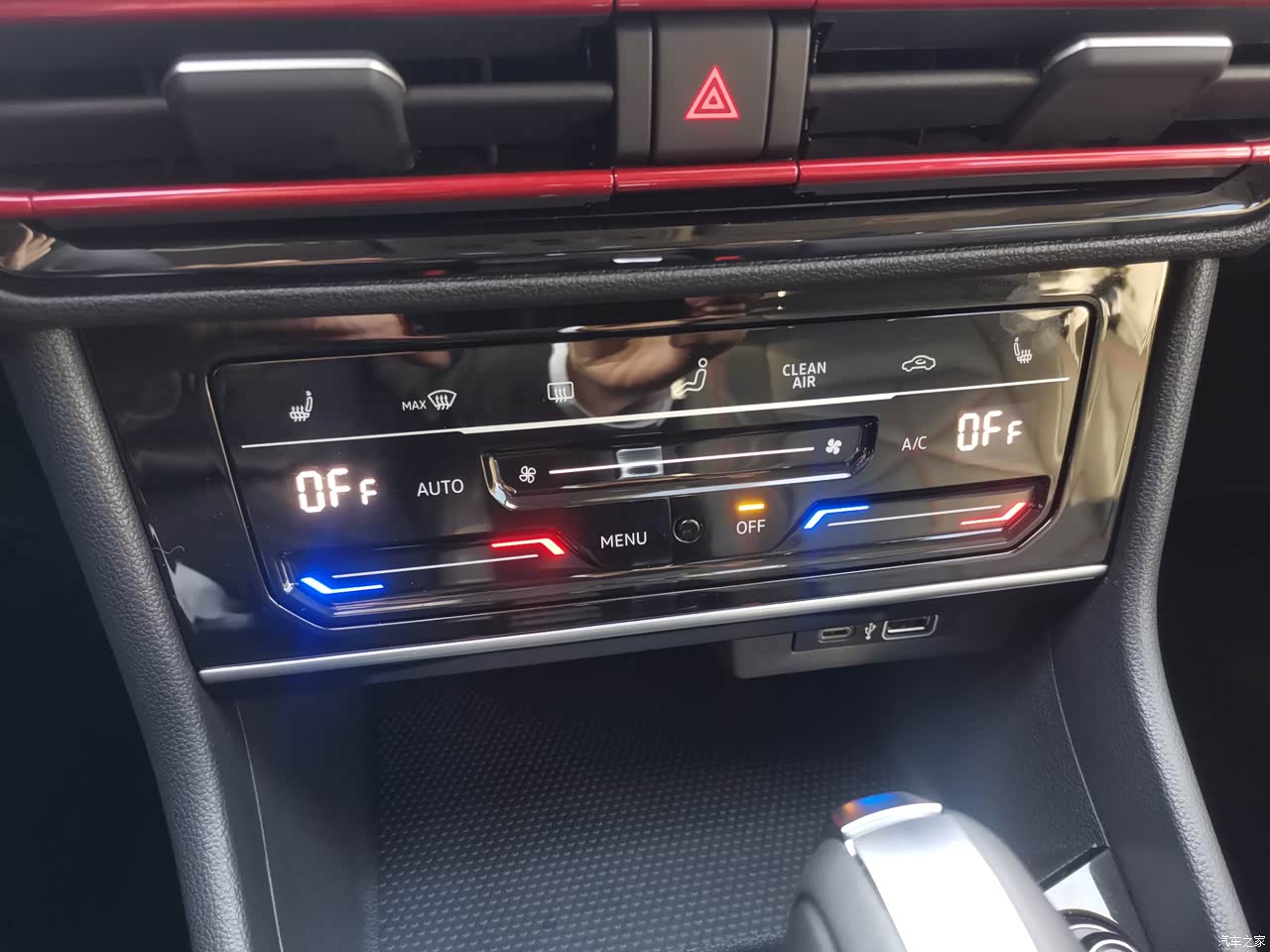黑色内饰,搭配红色的装饰线条,有年轻时尚的感觉,一件键启动使用起来非常顺手。 唯一美中不足的地方就是二排座椅中间的凸起,中间坐人的话,不太舒服。