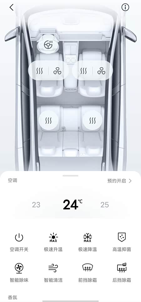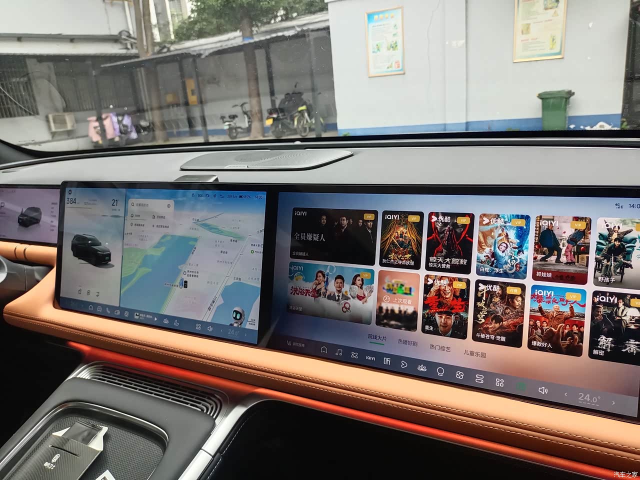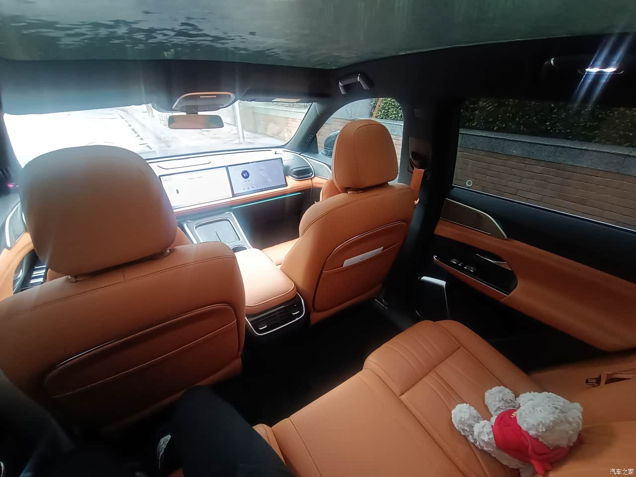 内饰高端,中控台设计时尚,标配仪表屏,双14.96寸中控屏和副驾娱乐屏,真皮方向盘加电动4向调节,全车nappa真皮座椅,前排加热通风按摩,后排加热,乘坐舒适。香氛系统3种香味可选,PM2.5过滤和空气质量监测适时提醒,净化车内空气。21喇叭 杜比全景声 音乐律动灯,氛围拉满。