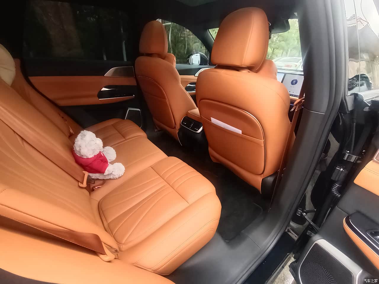 手套箱、中控台下储物空间非常实用,扶手箱左右开启非常方便。标配眼镜盒、主副驾手机无线快充,非常不错。后排座椅空间足够,前排正常坐人后,后排翘个二郎腿没问题,而且后排靠背可以电动调节。后备箱空间非常大,非常适合露营。