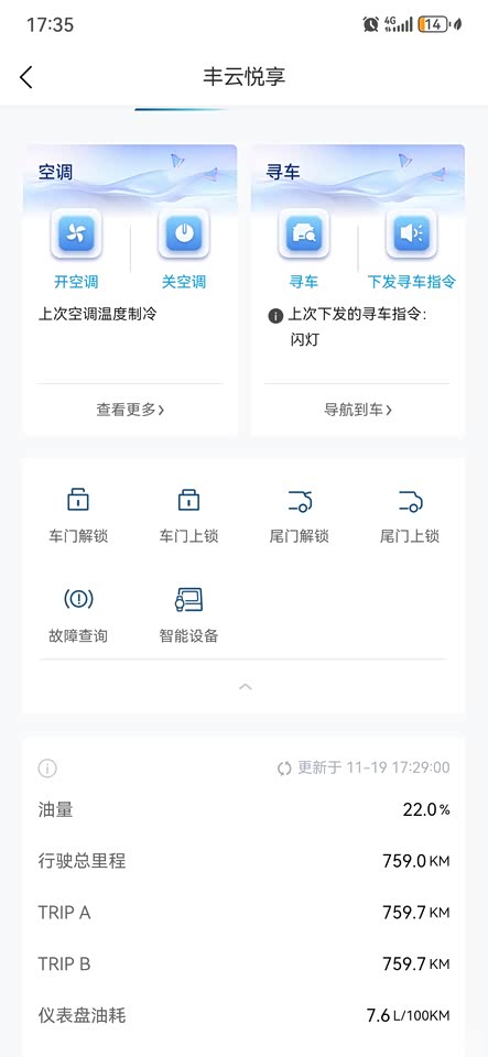 APP远程控制真心不错,特别是我这种有忘东忘西的毛病,有时候都上楼进家门了,手机提示车门没锁,这时远程控制就起到了作用。在手机上就可以控制锁门。 还有就是夏天,在出门前,就可以用远程控制来提前启动车辆,打开空调,非常奈斯。 😊 还有停在陌生地下车库时,找不到车了,也可以使用寻车功能找到车的位置。