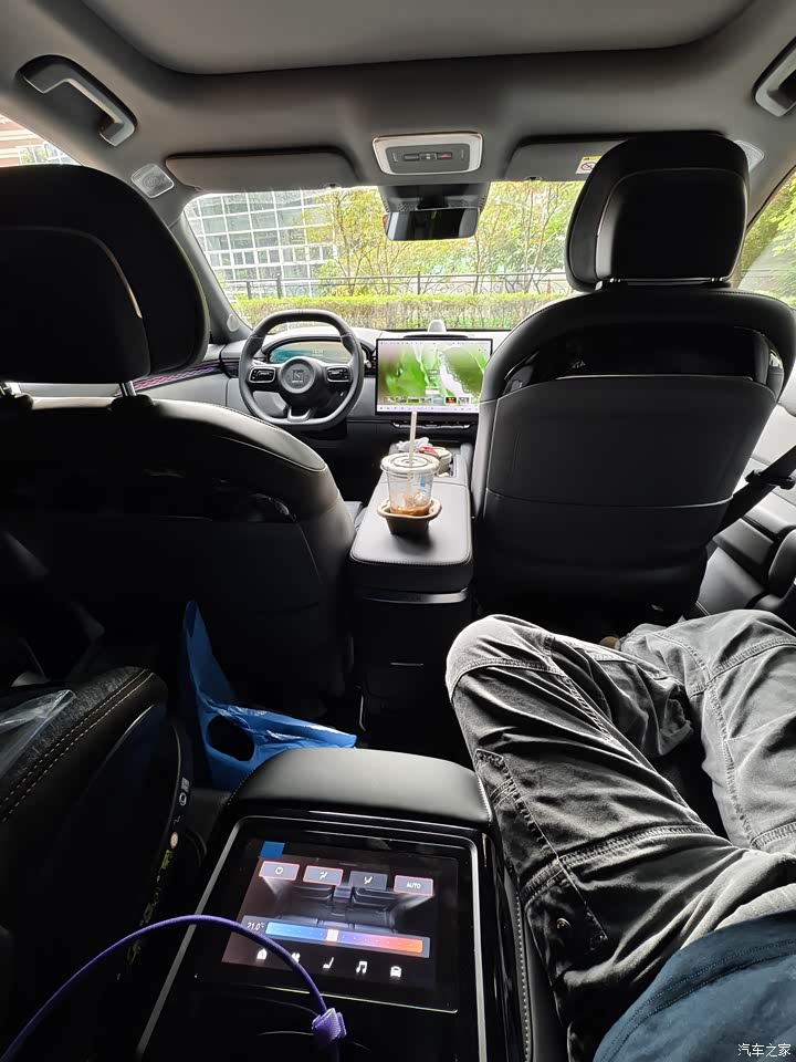 顶部不是绒布,是网面。不过设计感还是个人很喜欢的,只是一些材质可以看出相比001和007有点点差距。选装5000块电动沙发后,全车座椅通风、加热、按摩,还有方向盘加热。座椅舒适配置满配,这个好评。