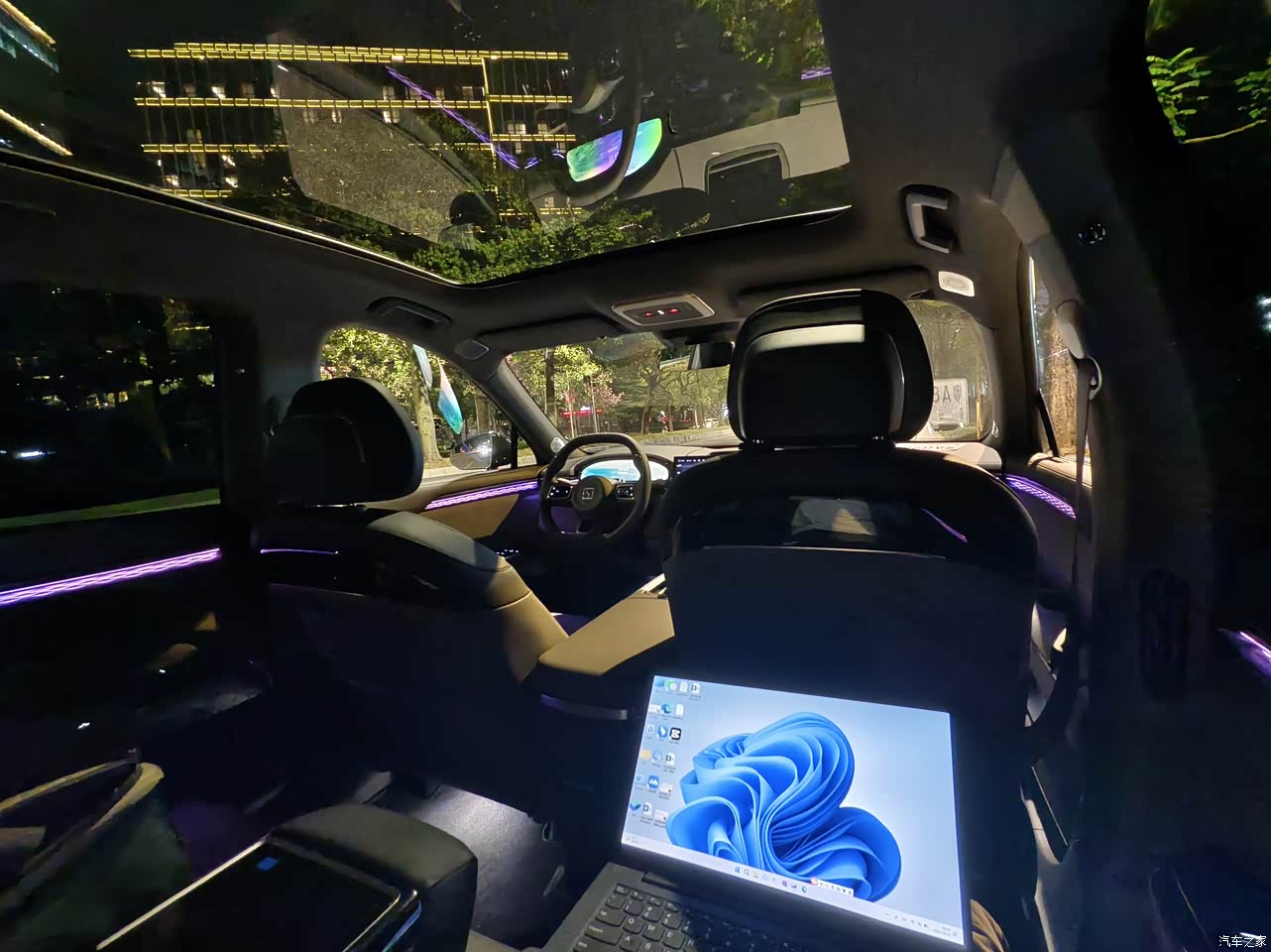有时办公室太吵,下来到车里写一些文档,坐到后排非常安逸。 天窗够大非常的开阔。