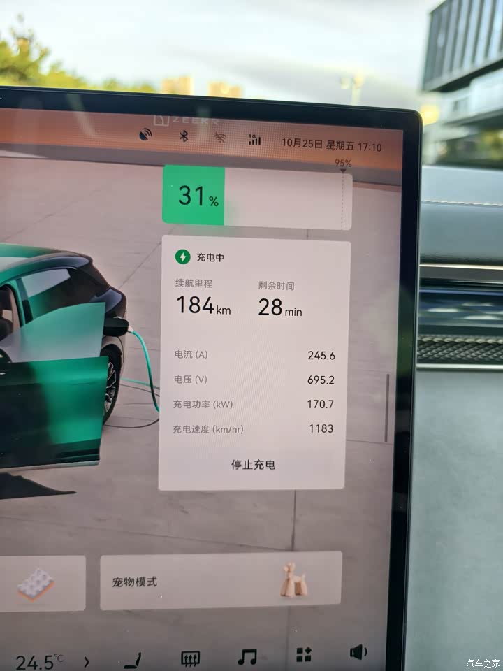 外面找了个号称240kW的电桩,充电可以到170kW功率,已经很快了。