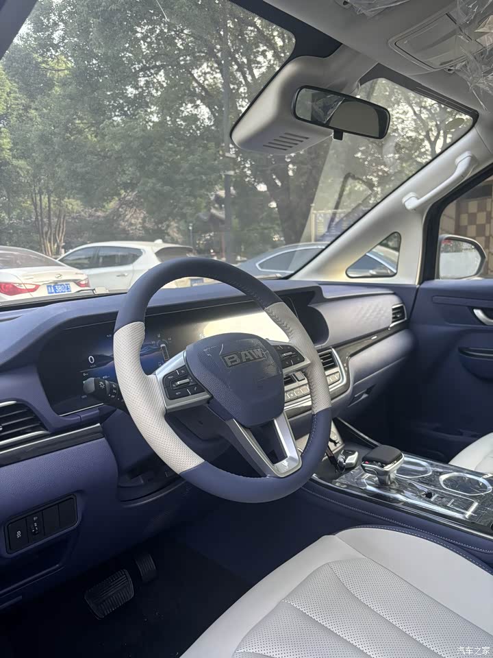 内饰的整体设计给人一种高端大气的感觉。蓝白相间的配色方案很清新,营造出了舒适的车内氛围。