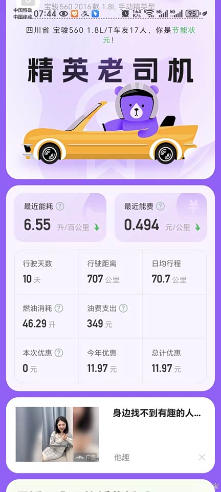 油耗必须百分,上一箱油跑了707公里,去加油46升,也就是说油箱还剩5升左右,再跑小一百应该问题不大,之前一箱油重来没跑过这么多