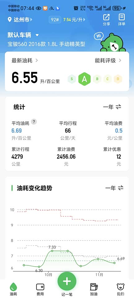 这油耗莫摆了,有图有真相,轮胎有两轮还是原车胎,年初换了两个,质量确实没得说