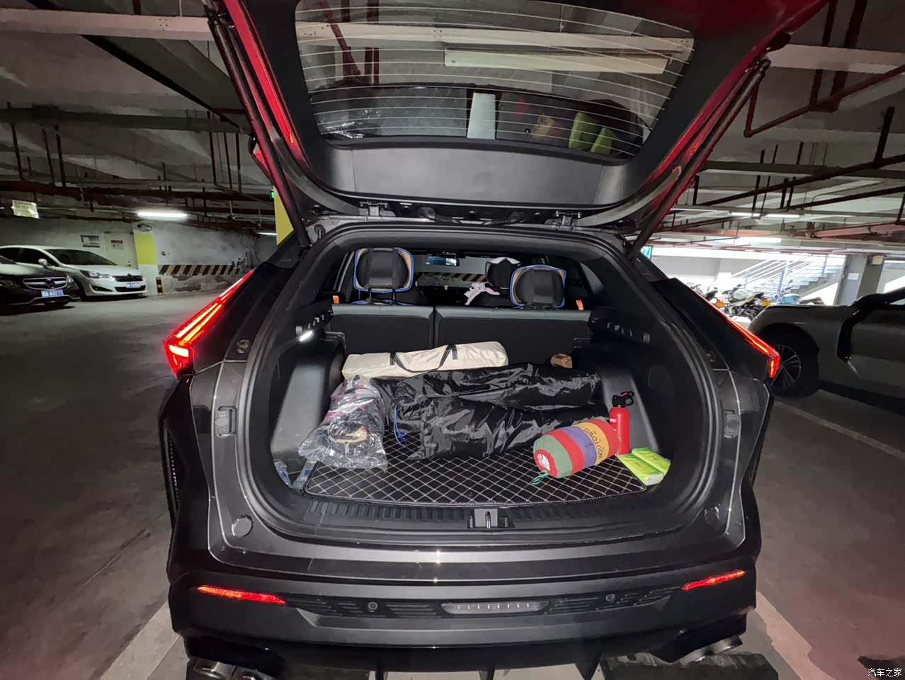 整体空间对于中等身材的我也是完全没问题的,载4大1小去玩,也不拥挤。后备箱两个行李箱一堆包,或者一堆露营工具也不在话下。